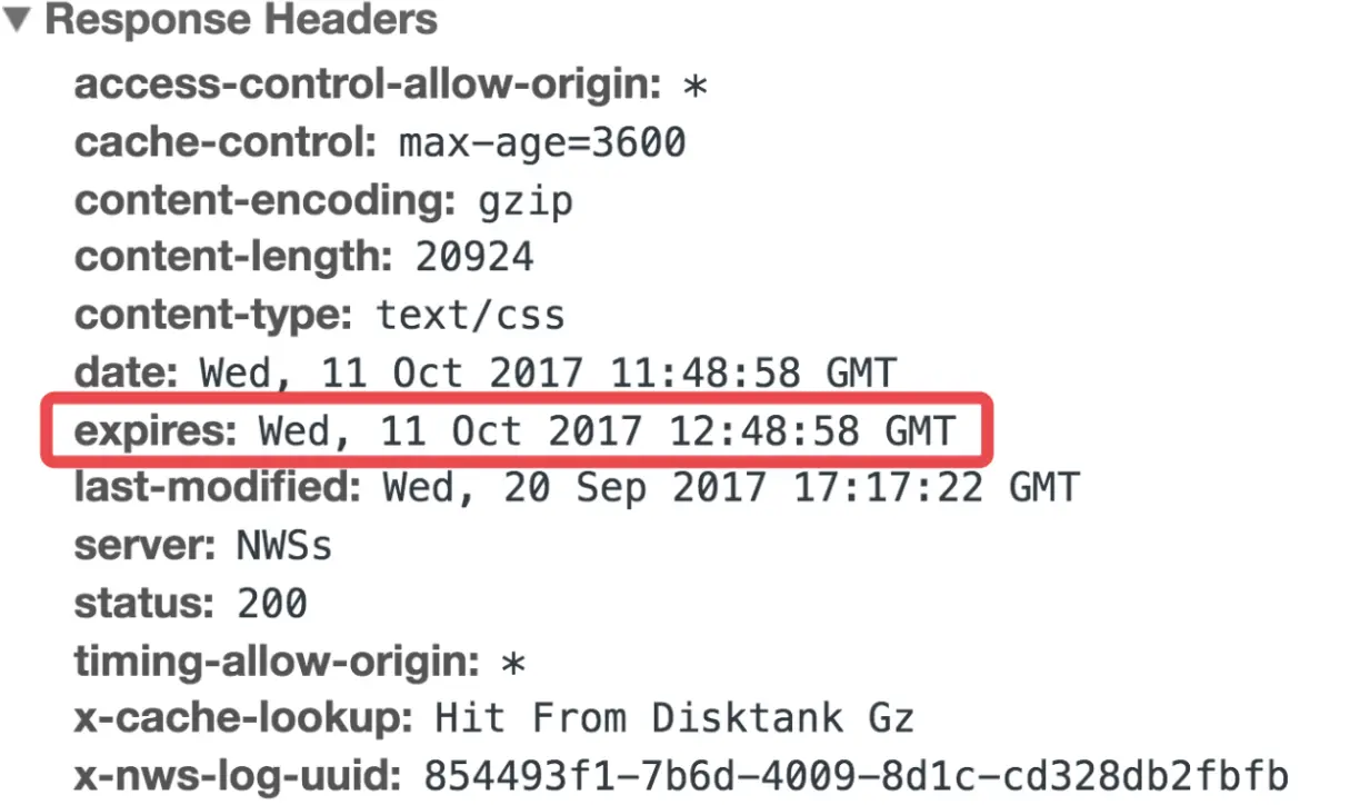 如果有人想用这个参数,一样也可以设置到请求里,设置了 Expires 的请求头大概是这样的