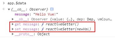 我们可以看到data对象下的属性message,有属于自己的get/set.