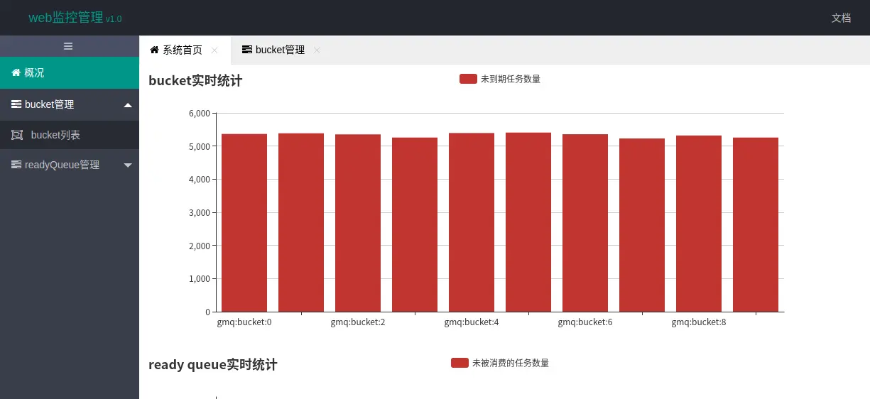 gmq提供了一个简单web监控平台(后期会提供根据job.Id追踪消息的功能),方便查看当前堆积任务数,默认监听端口为8000,例如:http://127.0.0.1:8000, 界面如下: