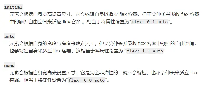 google看到了flex存在三个关键字 none initial auto 如下所示