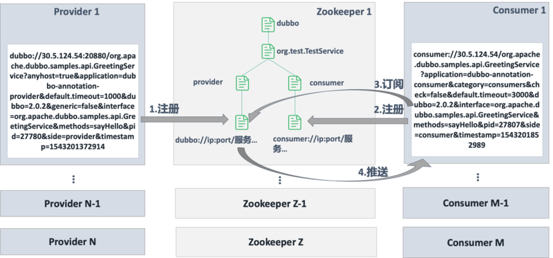 当某个服务的 Provider 列表有变化的时候,Zookeeper 会将对应的变化通知到订阅过这个服务的 Consumer 列表。//注册中心是主动通知消费者 生产者集合发生变化。即图里的第4步