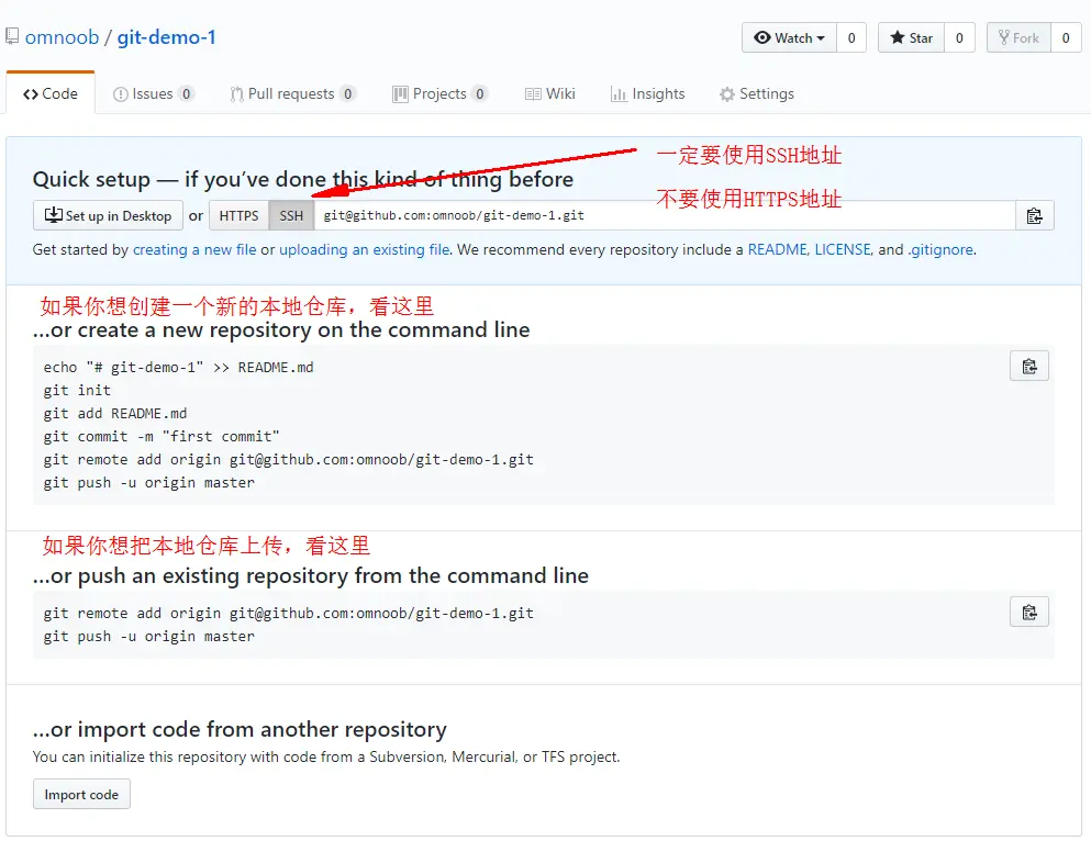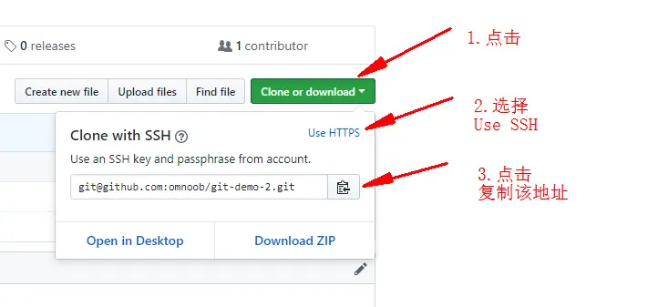 - 一定要点SSH按钮!因为不点的话默认的是 HTTPS地址,使用 HTTPS 地址很麻烦,因为每次使用 HTTPS 地址都需要输入密码,而 SSH 地址不需要。