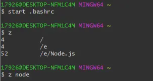 你对于它的理解可以是,一个增强bash功能的插件,先到GitHub搜索Z,一般情况下第一个就是了。clone或者download之后,到bash的初始化文件.bashrc中写入对于刚刚Z的引用。如下图。f是我盘符,前面有一个.+ 空格,点也可以换成source。