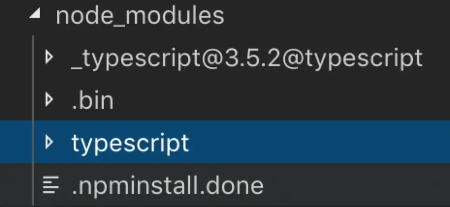 然后我们就在项目中的node_modules文件夹下,看到一个typescript文件夹,如下图: