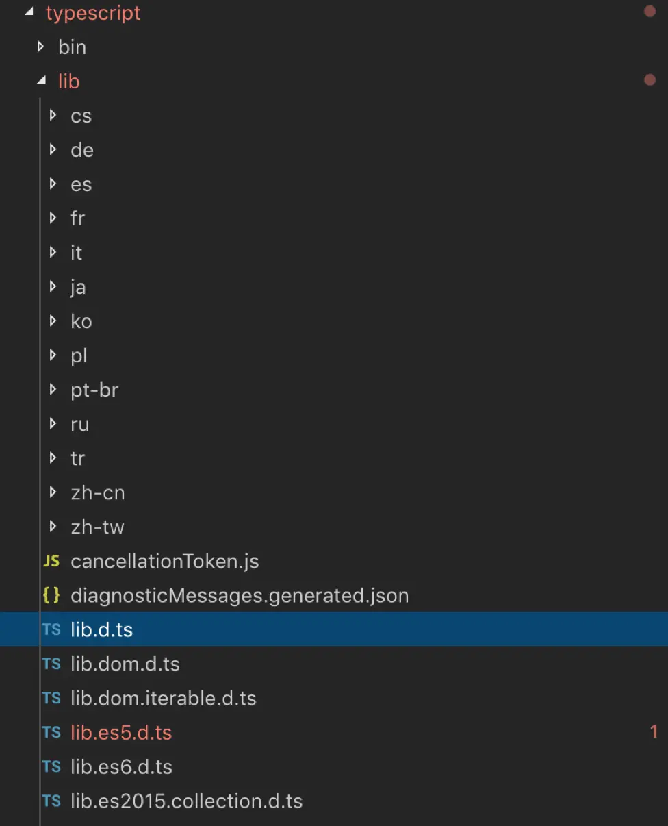 我们看到lib文件下有很多的*.d.ts文件,非别对es5,es6,es2016等这种版本作了类型约束,大家可以都打开看看。