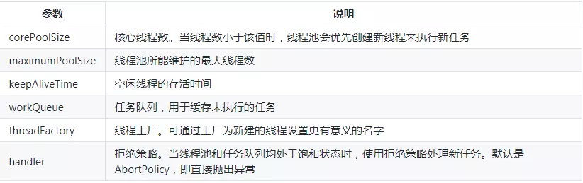 如上所示,构造方法的参数即核心参数,这里我用一个表格来简要说明一下各个参数的意义。如下: