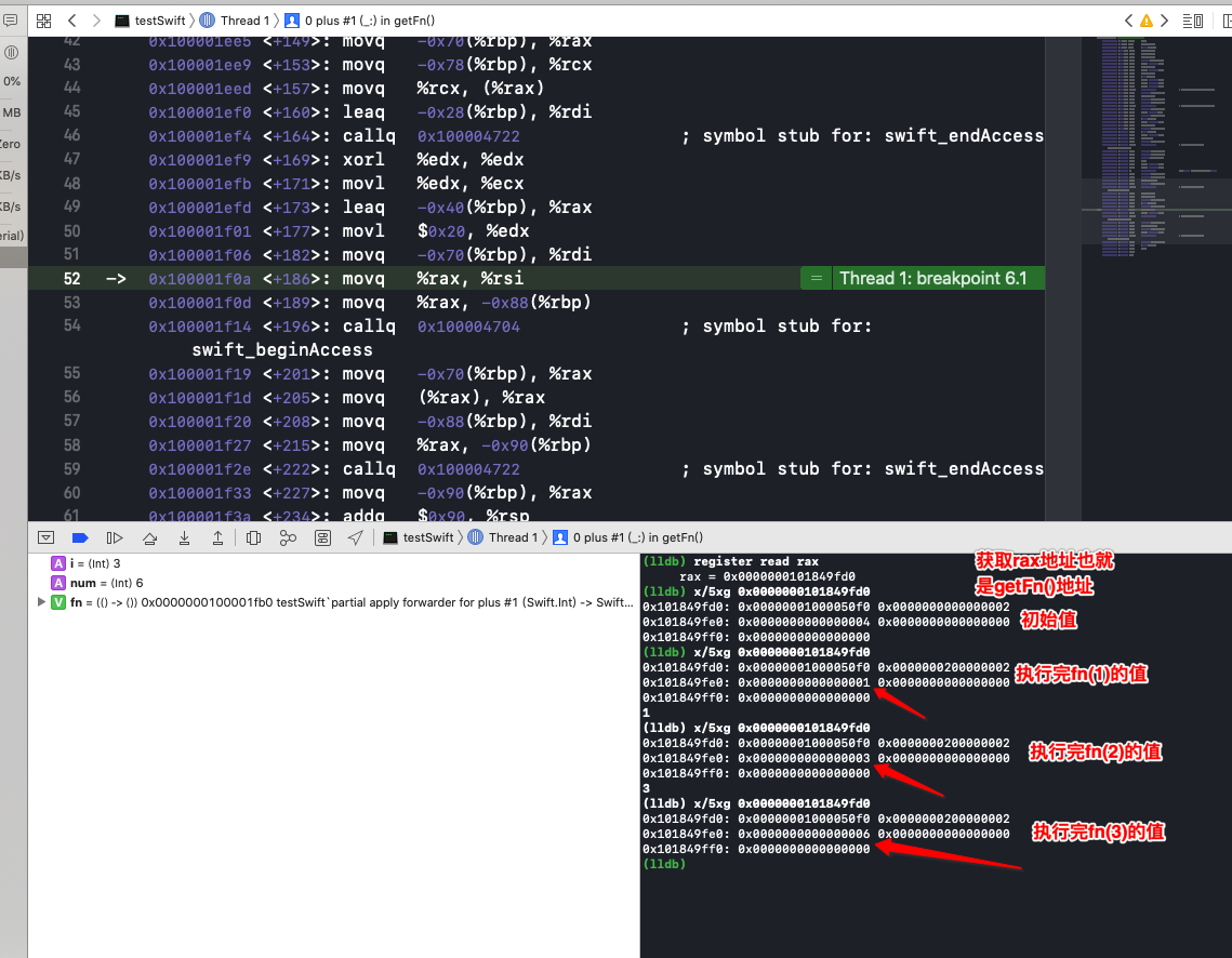 0x100001e31 <+81>: leaq 0x178(%rip), %rax ; partial apply forwarder for plus #1 (Swift.Int) -> Swift.Int in testSwift.getFn() -> (Swift.Int) -> Swift.Int at <compiler-generated>