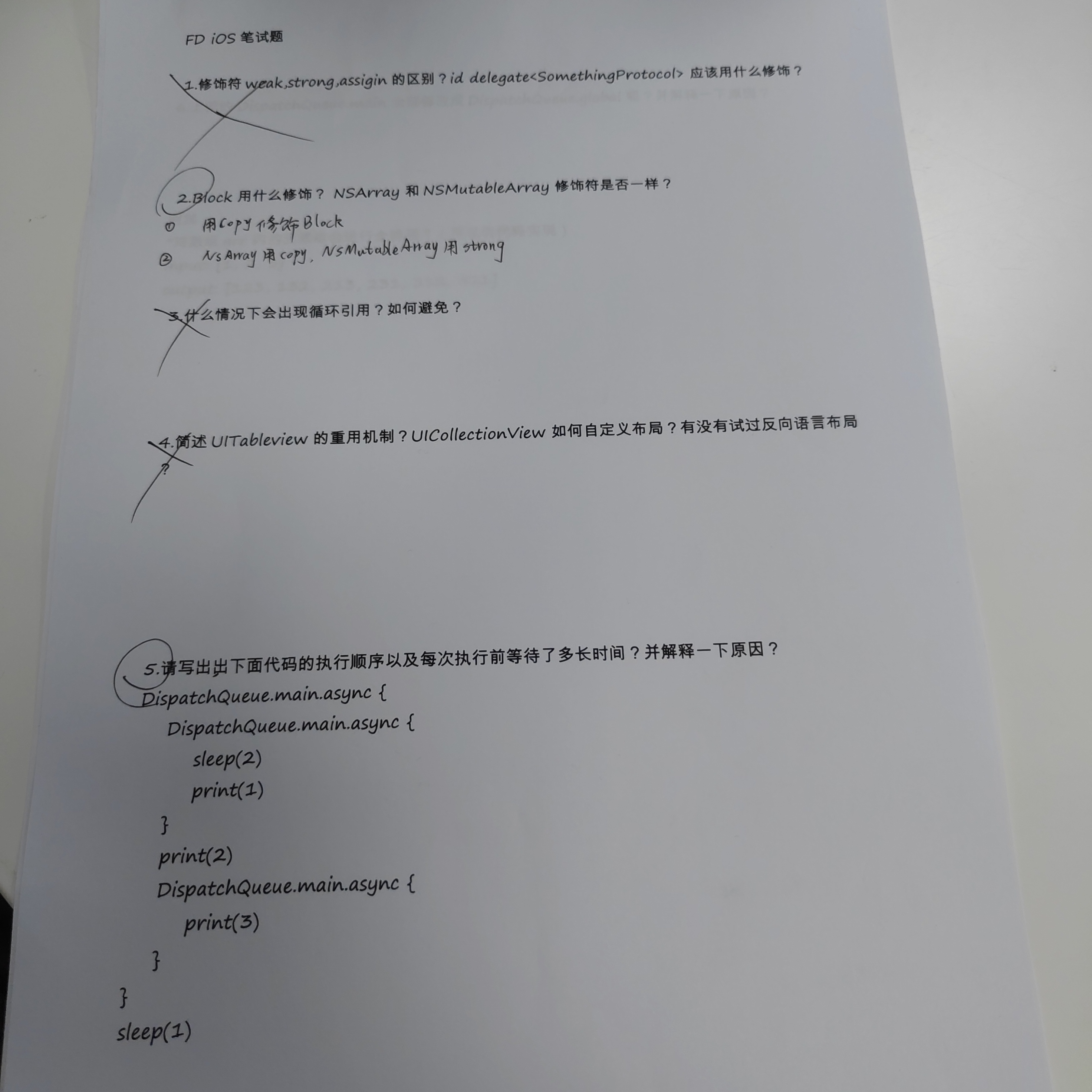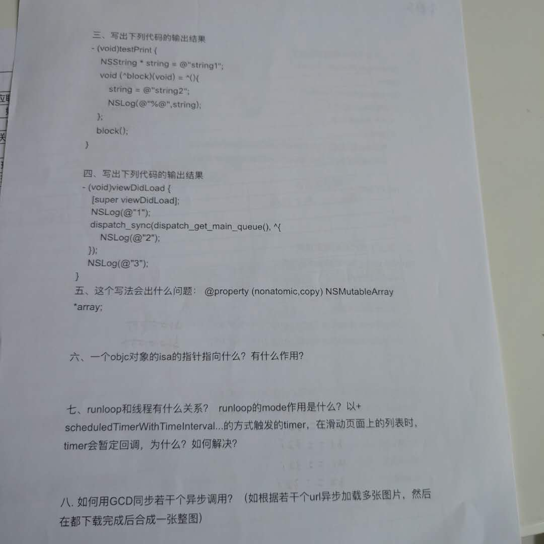 面试官问了下在哪些地方使用了gcd,自己的回答是创建单例时、一些常规的线程操作、创建定时器,得到的反馈依旧是过于表面,同时提到了block和多线程的高级用法,因为gcd问题的原因,后续也没多问。