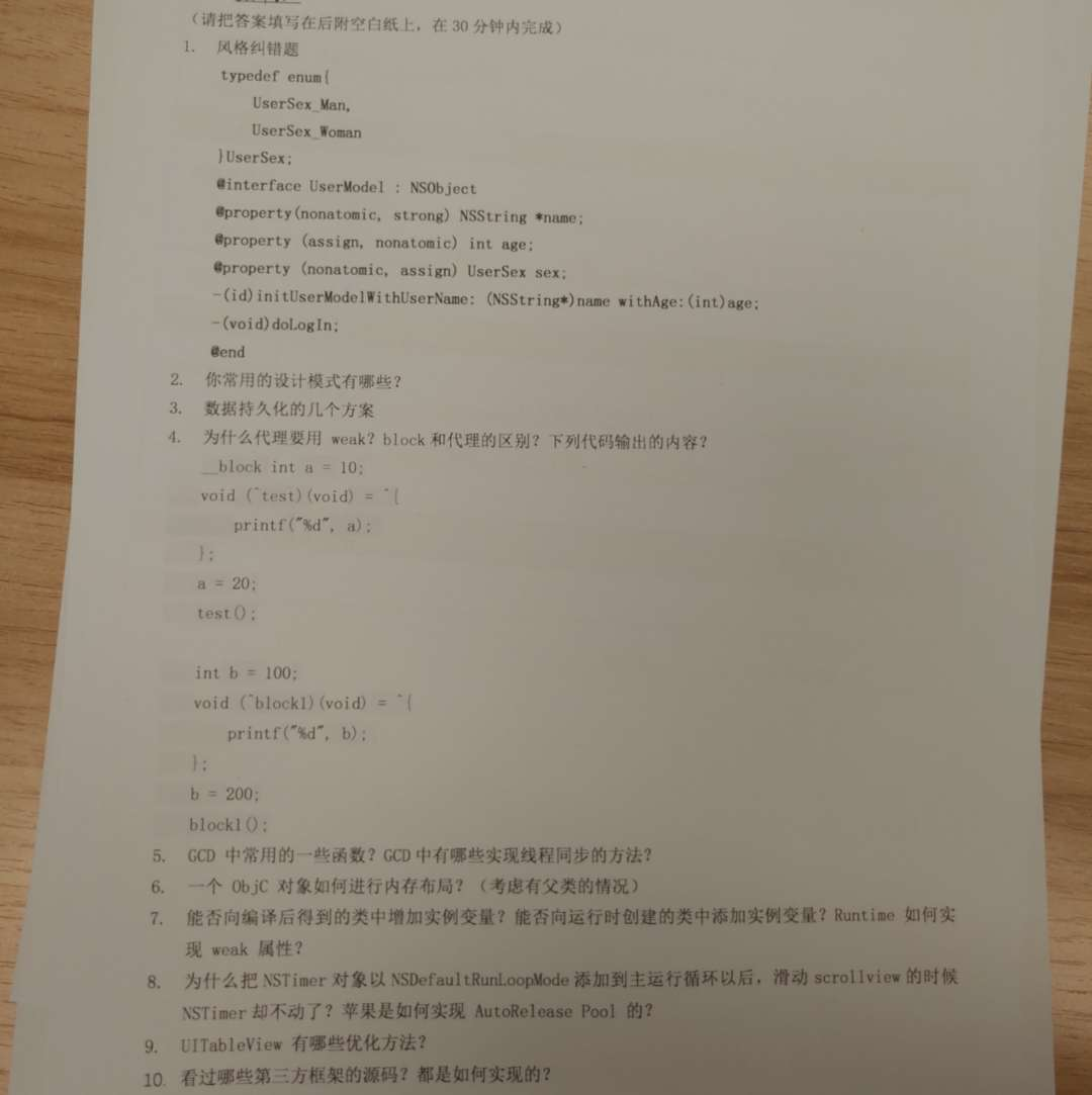 第一轮是iOS技术面试官面试,问题如下: