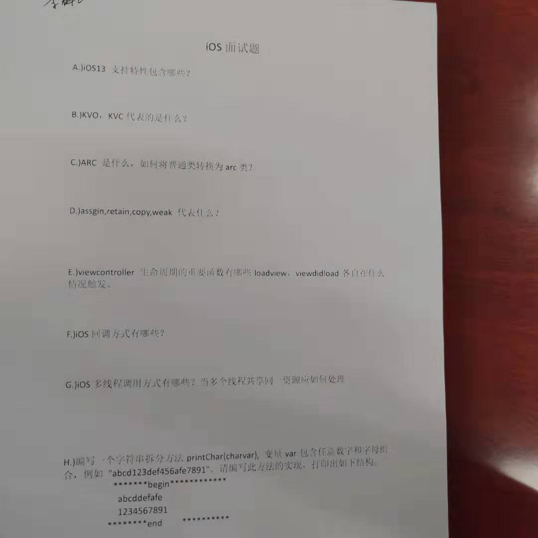 另外面试官反复问是什么时候置为nil的,自己的回答是dealloc的时候,面试官不是很满意。