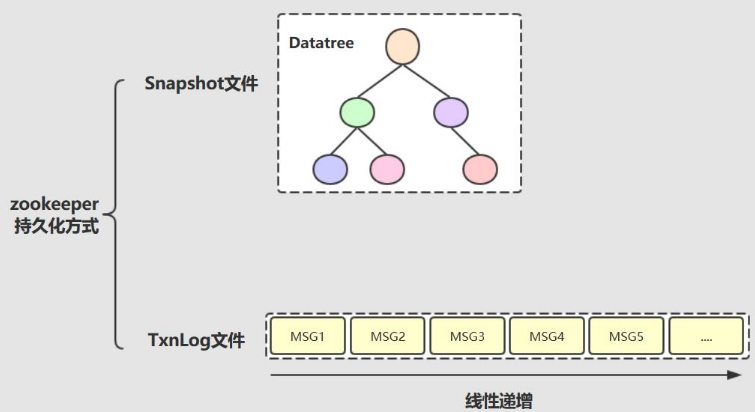 先从zookeeper的数据说起,zookeeper的数据在内存中是以树形结构的datatree形式存在的,采用了两种方式进行数据的持久化,一种是定期的snapshot;一种是增量事务日志txnlog;