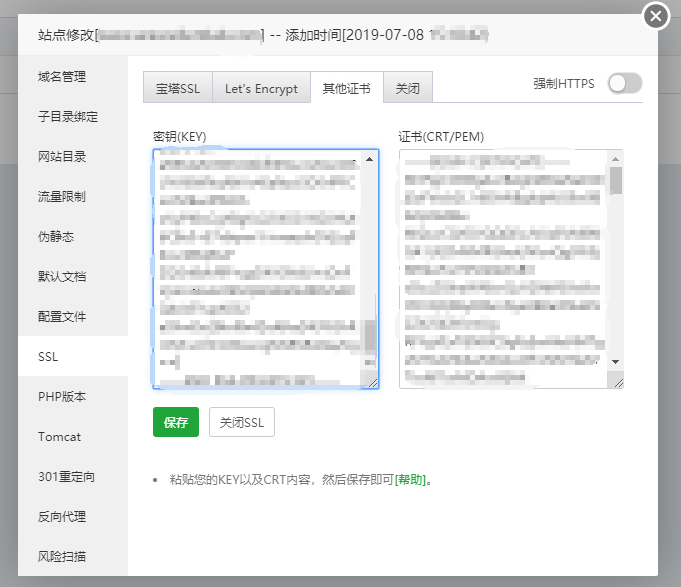 6.进行SSL重配置,进入阿里云的控制台-->域名-->免费开启SSL证书-->返回证书列表-->下载