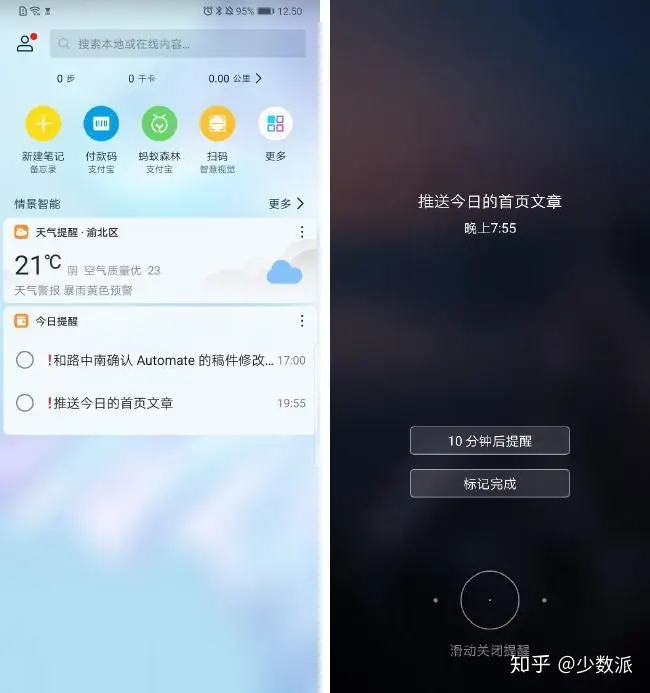 备忘录功能上一个小小的「微创新」,也让 EMUI 备忘录成为了移动办公的一大利器。