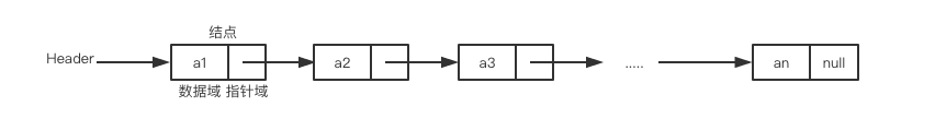 - n个结点链接成一个链表,即为线性表(a1, a2, a3, …, an)的链式存储结构;