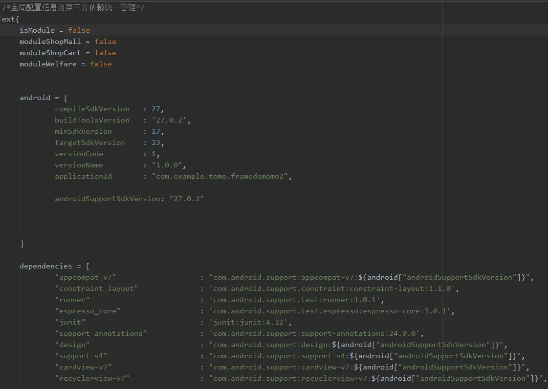 config.gradle主要来管理统一的SDK版本,避免版本冲突 (详细代码请下载项目查看 github.com/tome34/fram… )