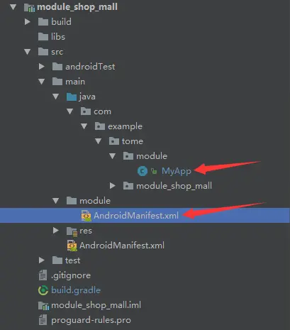 在 AndroidStudio 中每一个组件都会有对应的 AndroidManifest.xml,用于声明需要的权限、Application、Activity、Service、Broadcast等,当项目处于组件模式时,业务组件的 AndroidManifest.xml 应该具有一个 Android APP 所具有的的所有属性,尤其是声明 Application 和要 launch的Activity,但是当项目处于集成模式的时候, 我们要为组件开发模式下的业务组件再创建一个AndroidManifest.xml,然后根据isModule指定AndroidManifest.xml的文件路径,让业务组件在集成模式和组件模式下使用不同的AndroidManifest.xml,这样表单冲突的问题就可以规避了.如下module目录结构及: