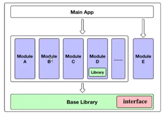 上图是组件化工程模型,下面会列举一些组件化工程中用到的名词的含义: