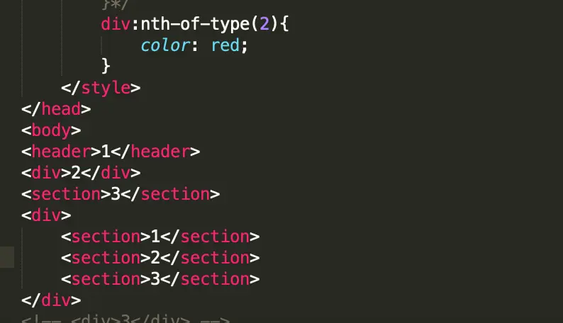 5,Element:nth-of-type(N) 选择器匹配属于父元素的特点类型的第N个子元素的每个元素 举例