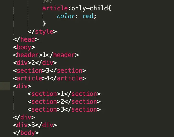 9,Element:only-child 选择器匹配属于其父元素唯一子元素的每个元素(该元素的父元素只有当前一个自身元素) 举例