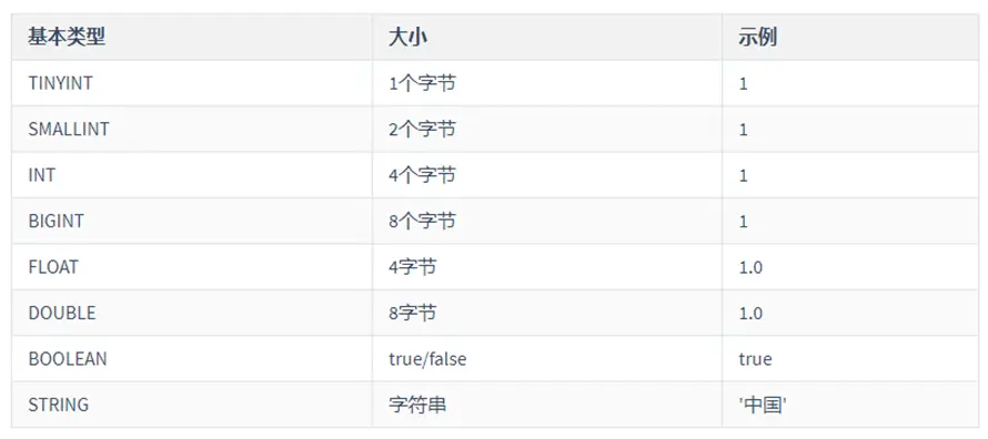 Hive中的基本数据类型