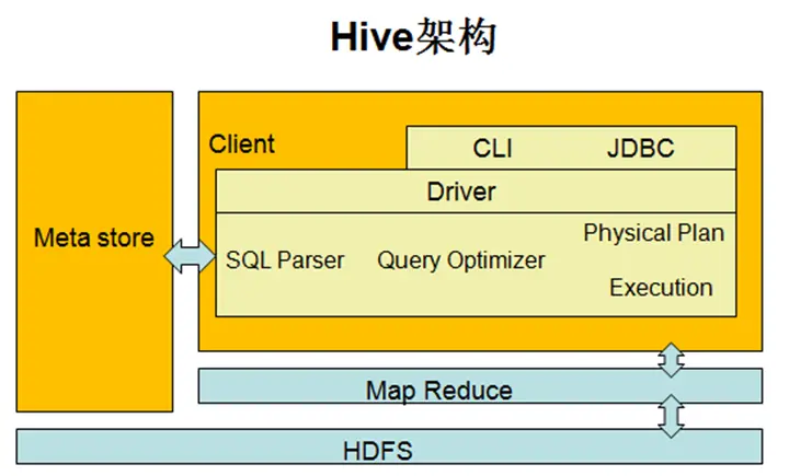 - 用户接口:包括CLI,JDBC/ODBC,WebUI等方式。