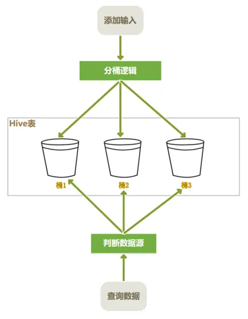 user_id的值进行哈希后模除分桶个数,根据得到的结果,确定这行数据分入哪个桶中。 - SORTED BY:指定桶中的数据以哪个字段进行排序,排序的好处是,在 join 操作时能够获得很高的效率。