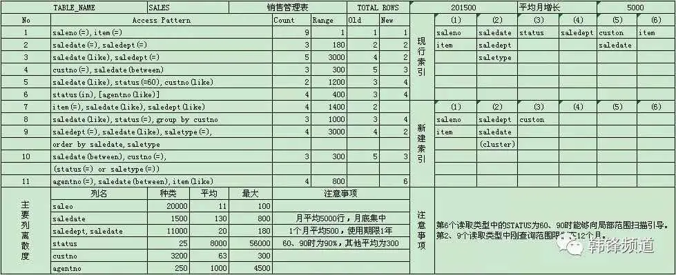 索引过多会影响DML效率、占用大量空间。可通过“索引/表”,大致反应出索引数量的合理程度。这里没有建议的数值,可根据情况酌情考虑。对于任何数据库来说,都有类似的问题,就是如何“构建战略性索引策略”。这里可参考下表(选自李华植-《海量数据库解决方案》一书),梳理索引需求。科学地创建、维护索引。