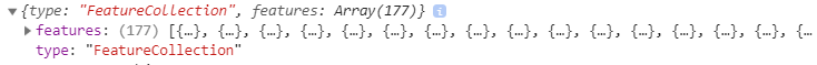 上图的json对象是定义所有国家(地区)的FeatureCollection,其中的features描述了177个国家(地区),它是一个关于Feature对象的数组,Feature对象的结构如下。