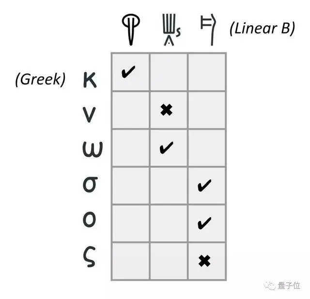 其中,线性文字B的字母和希腊文需要进行对应。