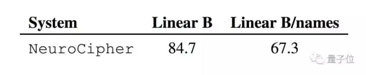 而线性文字B,在无噪声条件下准确率高达84.7%,在更具挑战性的LinearB名称数据集中达到67.3%的准确度。