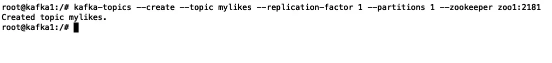 kafka-topics --create --topic mylikes --replication-factor 1 --partitions 1 --zookeeper zoo1:2181