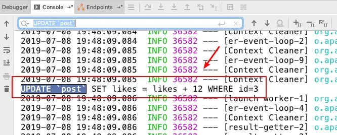 String sql = String.format("UPDATE `post` SET likes = likes + %s WHERE id=%d", record._2, record._1);