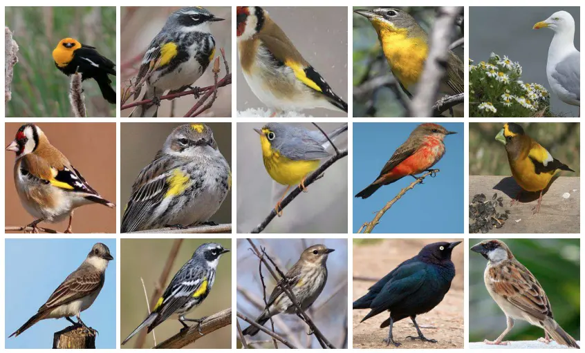 下面是以鸟的子类间分类为例,细粒度分类类间因为较为相似,所以类间方差小,而类内由于姿态、光纤等问题,类内方差大。