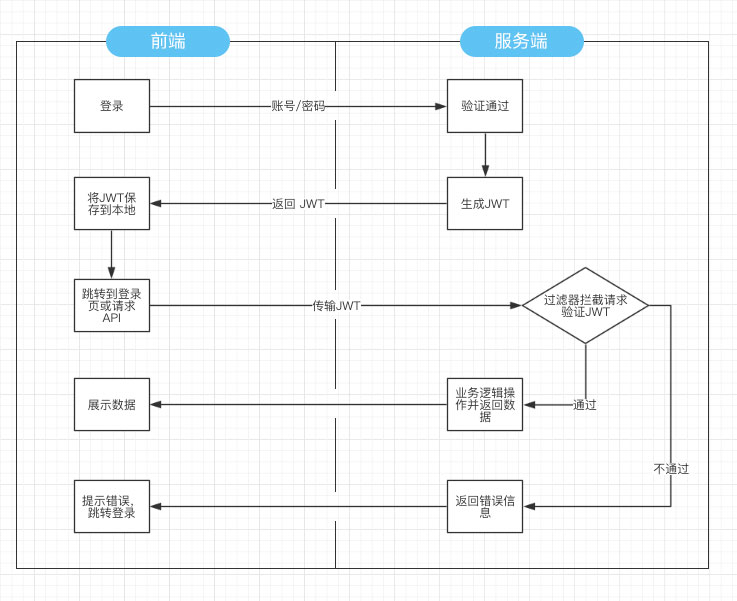 前后端分离通过Restful API进行数据交互时,如何验证用户的登录信息及权限。在原来的项目中,使用的是最传统也是最简单的方式,前端登录,后端根据用户信息生成一个token,并保存这个token 和对应的用户id到数据库或缓存Session中,接着把token传给用户,存入浏览器 cookie,之后浏览器请求带上这个cookie,后端根据这个cookie值来查询用户,验证是否失效。