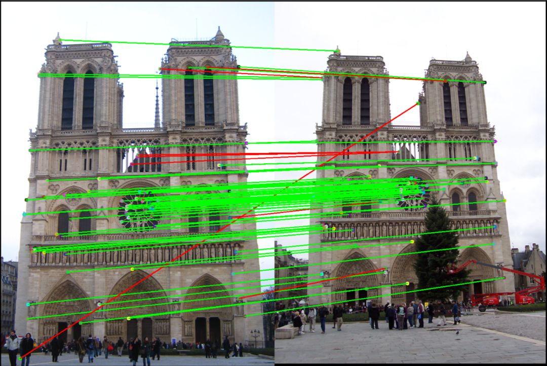 图 6: 特征匹配示例。图源:CS 6476: Computer Vision Project 2: Local Feature Matching URL:https://www.cc.gatech.edu/~hays/compvision/proj2/