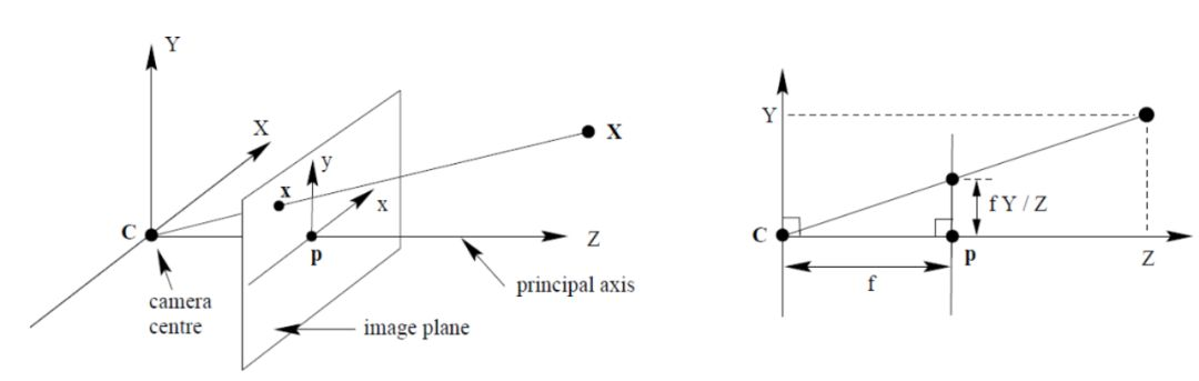 图 2:针孔摄像机模型。图源:Richard Hartley and Andrew Zisserman. Multiple view geometry in computer vision. Cambridge university press, 2003.