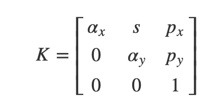 上式中,等式右边的第一个矩阵就是相机的内参矩阵 K: