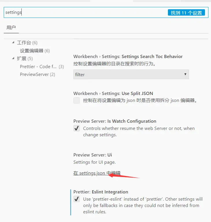 打开vscode工具的设置,在settings.json中配置