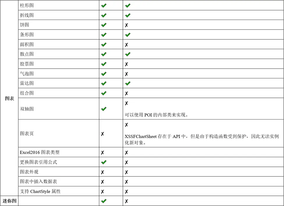 GcExcel完全支持添加和配置迷你图(Sparklines)。 Apache POI目前不支持Sparklines。