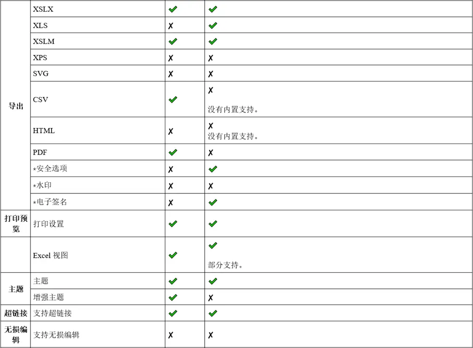 以上就是GrapeCity Documents for Excel 与 Apache POI 的功能对比。GrapeCity Documents for Excel作为GrapeCity Documents的文档API组件包之一,为开发人员提供了代码批量操作 Excel 文件的方式,通过与纯前端表格控件SpreadJS结合使用,可同时在Web 端实现 Excel类数据展示、Excel功能和布局样式,以及后端Excel 导入导出等业务场景,使您开发的应用程序具备快速创建、加载、编辑、导入/导出大型 Excel 文档的功能模块。