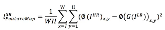 1)基于srGAN网络,该网络加入了特征图的损失函数,这样可以很好保留高频信息,能更好的保留边缘。特征图的损失函数如下图所示: