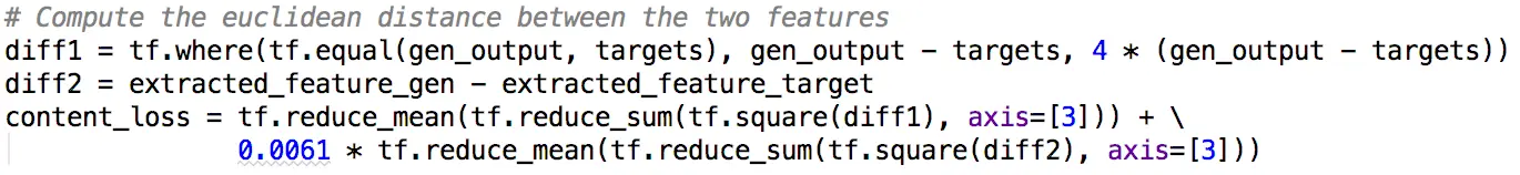 3.内容损失函数对于压制误判的噪点效果不理想,因此加大了误判的惩罚,具体如下图所示: