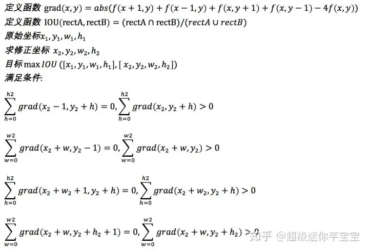 由于目标检测模型本身的局限性,会导致没法达到像素级别的精确性,因此需要对位置做修正。如果是简单背景就可以基于梯度的思想做位置修正,具体计算方式如下: