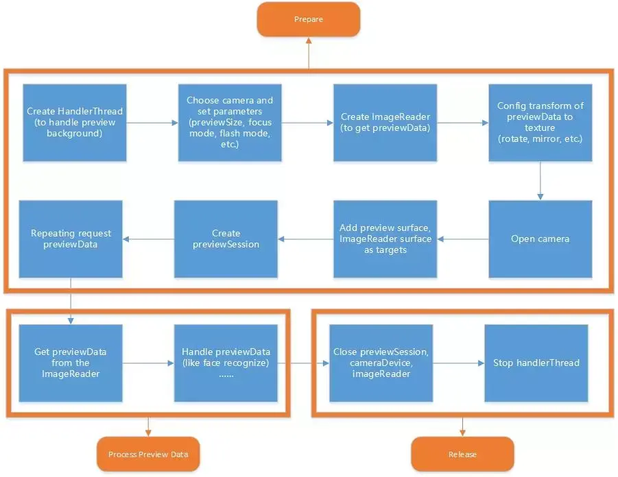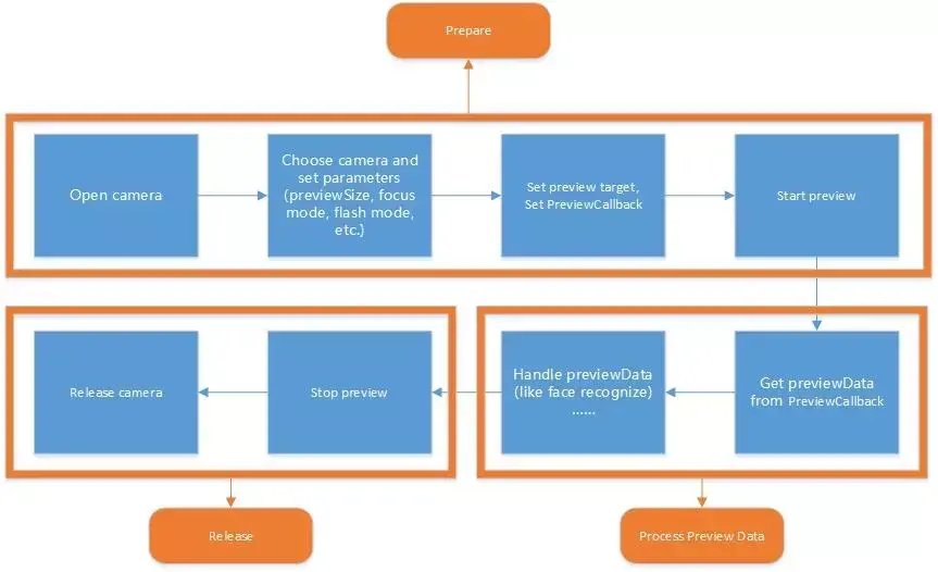 以下分别是使用Camera2和Camera打开相机进行预览并获取预览数据的流程图。