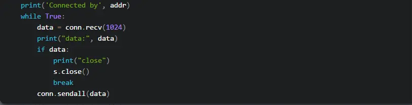 首先,我们来看一段代码(说了这么多理论,终于要看点代码了)。这里举一个 python 简单的使用 socket 进行 tcp 通信的示例: