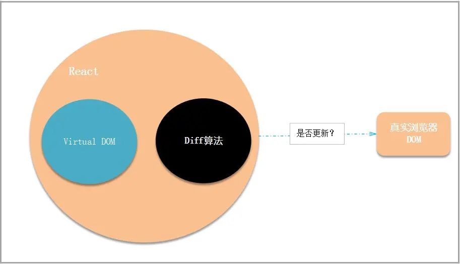 注意:如果明确知道Virtual DOM没有变化,则无需继续比较Virtual DOM树从而节省了时间。React允许我们通过shouldComponentUpdate()来判断该组件是否需要进行diff算法分析如果是不同类型:替换整个组件下的所有子组件