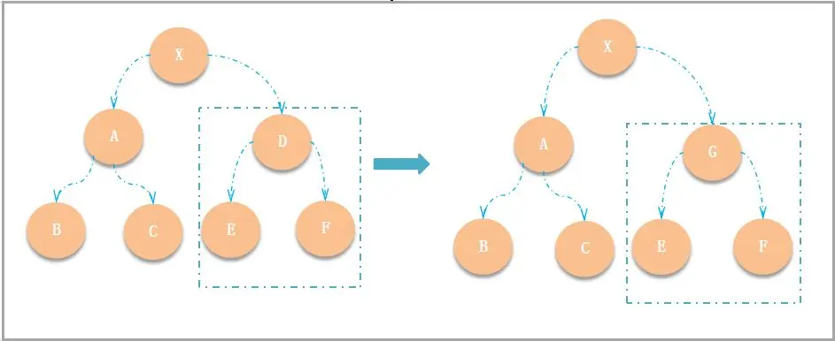 diff执行情况:delete D ——> create G ——> create E ——> create F