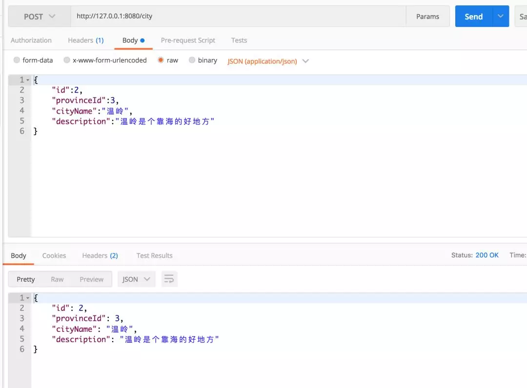新增城市信息 POST http://127.0.0.1:8080/city