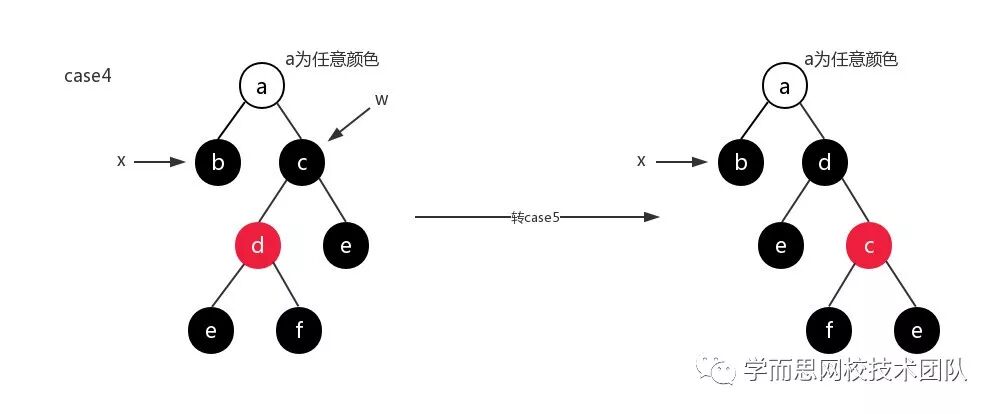 删除结点的兄弟结点是黑色,其右孩子是红色(左孩子不管是什么颜色),调整措施为:将删除结点的父结点的颜色赋值给其兄弟结点,然后再设置父结点颜色为黑色,兄弟结点的右孩子结点为黑色,根据其父结点做左旋操作,最后设置替换删除结点的结点为根结点;