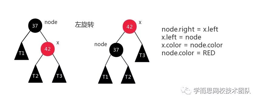 此时有个说明,因为左旋转是个子过程,不维持红黑树的基本性质,后续还有处理过程。